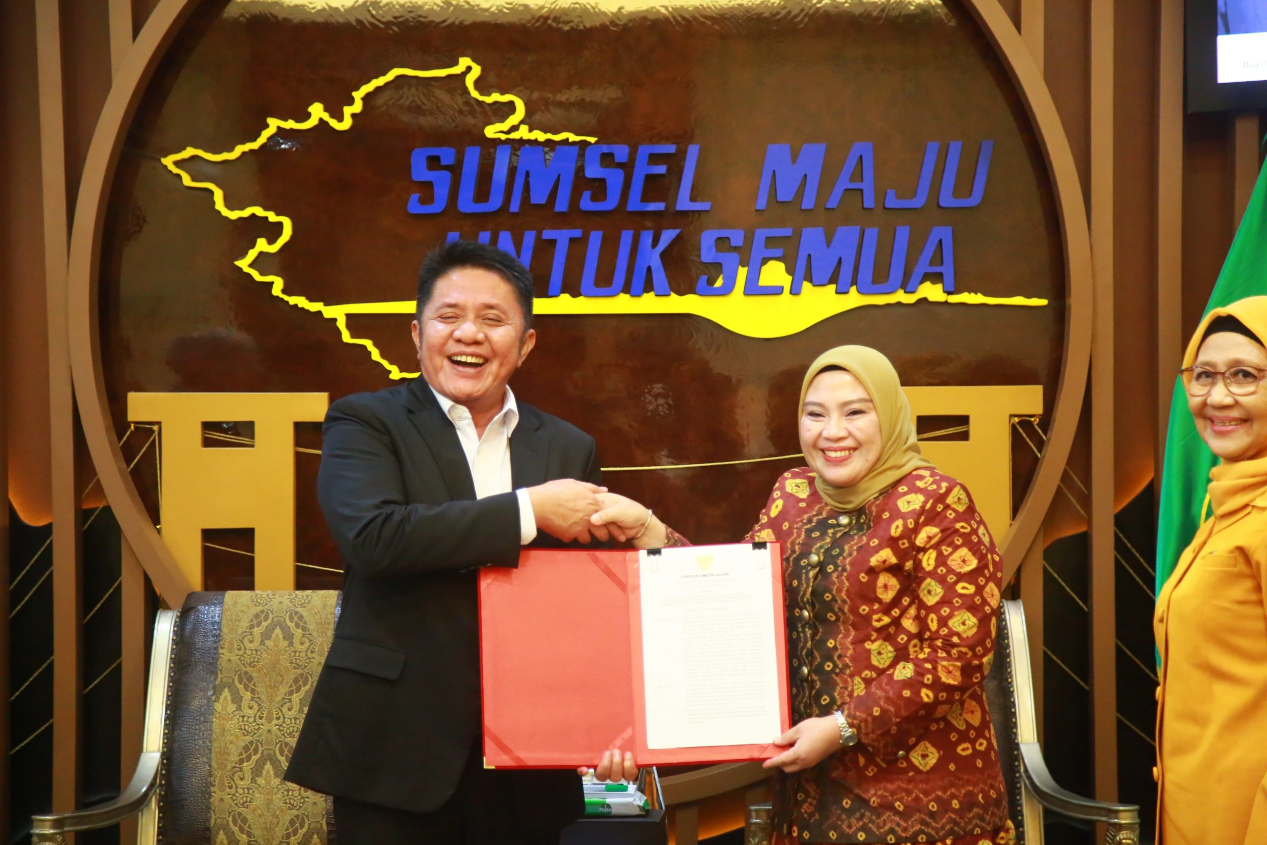 Palembang – Gubernur Sumatera Selatan (Sumsel) H. Herman Deru menyerahkan Surat Keputusan (SK) Kepengurusan Badan Kerjasama Organisasi Wanita (BKOW) kepada Hj. Lidyawati Cik Ujang, Senin (30/6/2025) di Ruang Tamu Gubernur. Dalam kesempatan ini, ia menegaskan pentingnya kiprah perempuan dalam memperkuat pembangunan sosial di daerah.