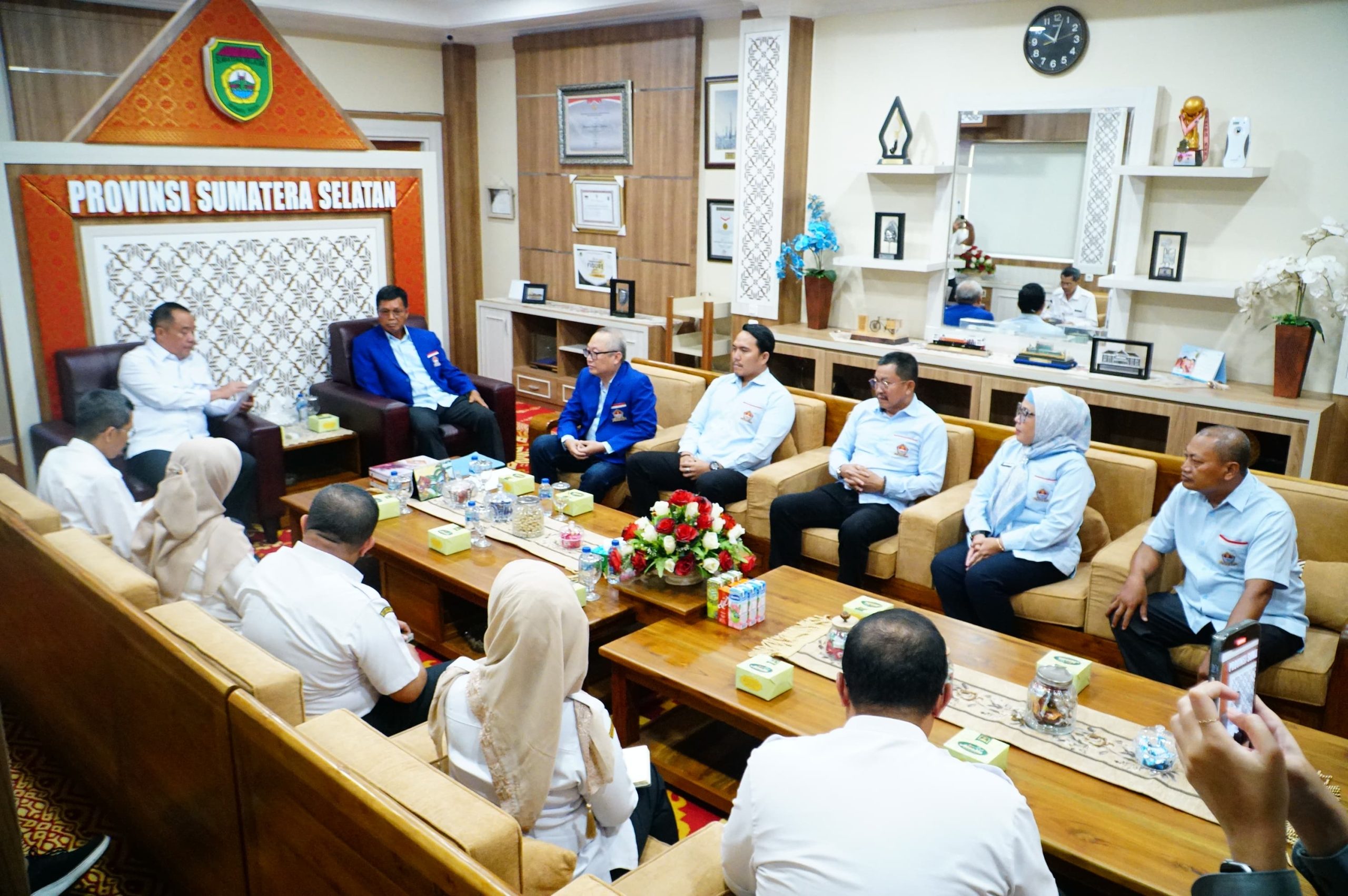 Palembang – Wakil Gubernur Sumatera Selatan (Sumsel) H. Cik Ujang menerima audiensi dari Himpunan Nelayan Seluruh Indonesia (HNSI) Provinsi Sumsel di Ruang Tamu Wakil Gubernur, Rabu (16/07/2025). Pertemuan tersebut digelar sebagai ajang silaturahmi sekaligus penyampaian aspirasi dari nelayan di Sumsel.