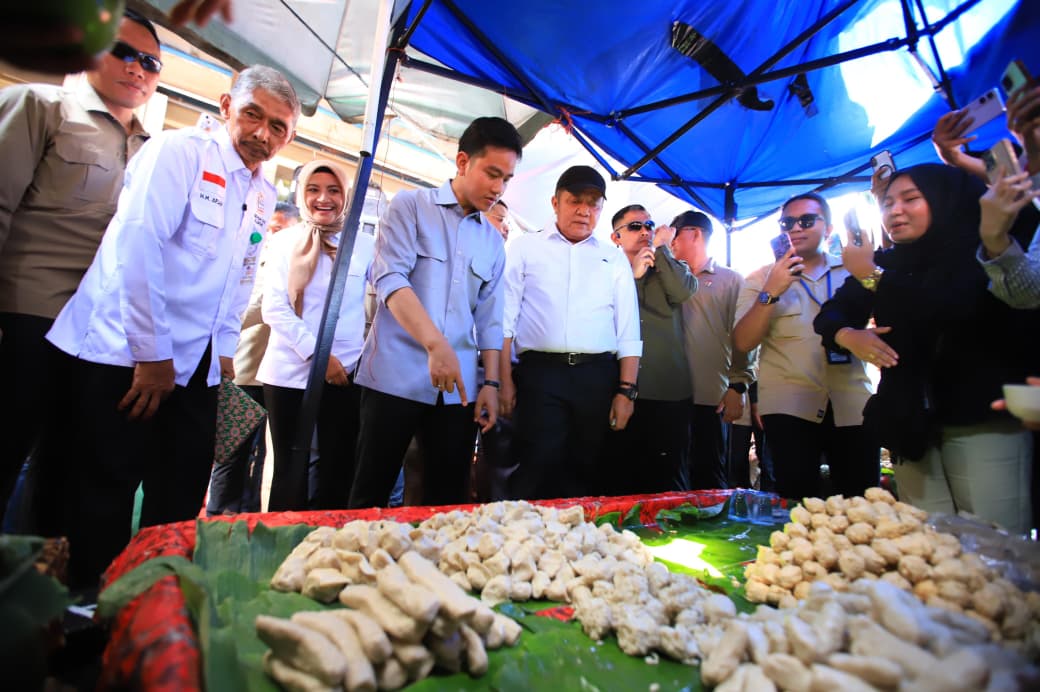 Didampingi Gubernur Sumatera Selatan H. Herman Deru, Wapres Gibran tampak akrab menyapa pedagang. Tidak hanya sekedar meninjau, ia juga menyempatkan diri mencicipi kuliner khas Palembang, yaitu pempek tumpah, yang disuguhkan langsung oleh pedagang setempat.